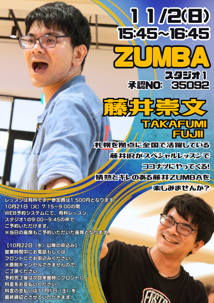 11月2日(日)に藤井崇文さんをお招きしてスペシャルイベントレッスンを行います!!