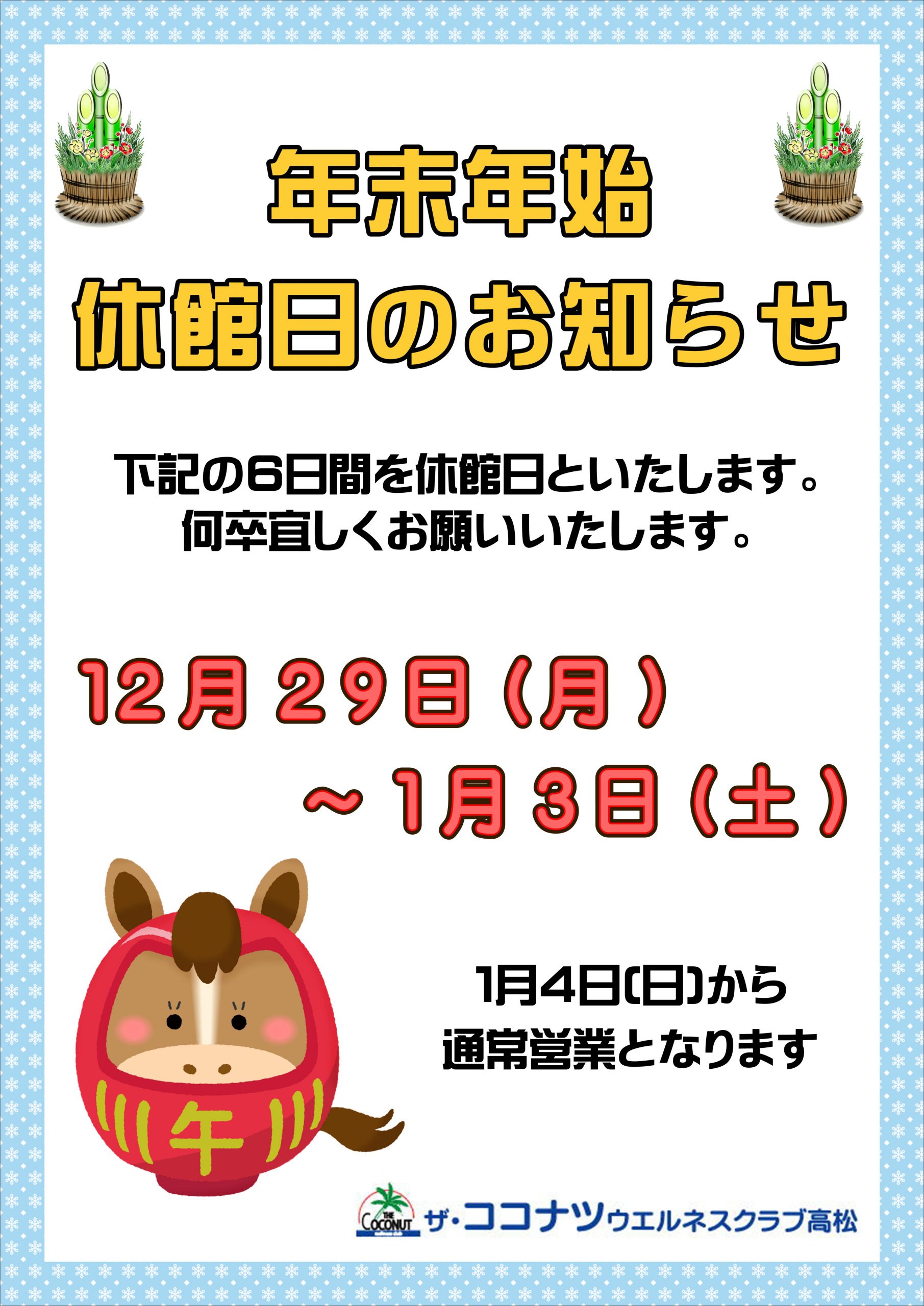 下記の日程を休館日とさせていただきます。